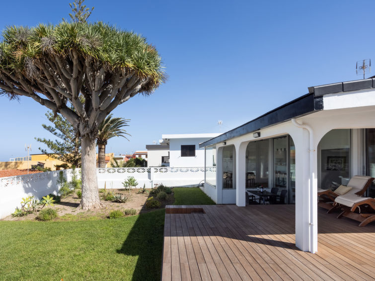 Moderne, schöne, gemütliche Villa "Las Aguilas". Im Ortszentrum von Punta Hidalgo, im Villenviertel, exzellente Lage: Absolut zentral und dennoch ruhig, 130 m vom Meer. Zur Alleinbenutzung: Liegewiese, wunderschöner Garten zum Entspannen. Sprudelbad, Parkplatz (für 2 Autos) beim Haus. Supermarkt 300 m, Restaurant 150 m, Bar, Café 110 m, Fußgängerzone 75 m, Bushaltestelle 150 m, Sandstrand "Playa del Arenal" 1.6 km. Surfschule 400 m. Nahe gelegene Sehenswürdigkeiten: Piscina Natural Punta del Hidalgo 350 m, Faro Punta del Hidalgo 1.6 km, Casa Tita 650 m, Cofradía de la Punta 450 m, Casa Pepe el Playa 3.9 km. Wandergebiete: Sendero Punta del Hidalgo.