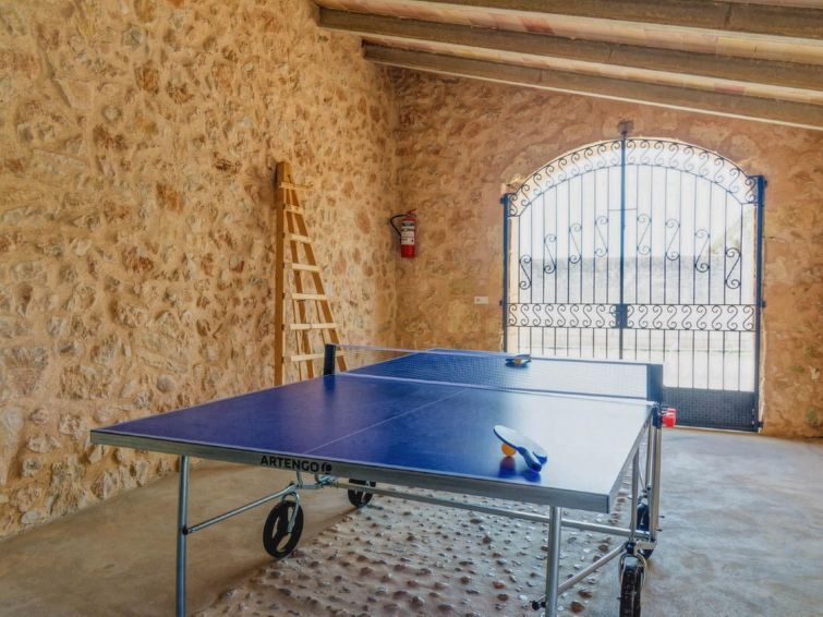 Vilafranca: Groot, rustieke, eenvoudig landgoed "Albadallet", van 2 verdiepingen, omgeven door bomen en velden. Buiten de plaats Vilafranca, rustige, zonnige ligging, 23 km van zee, 23 km van het strand, te midden van groen. Voor alleengebruik: wild terrein, mooie tuin ter ontspanning, openluchtzwembad hoekig (5 x 10 m, 130 - 210 cm diepte, seizoensgebonden beschikbaarheid: 01.Mrt. - 31.Okt.). Buitendouche, tafeltennis, patio, prieel, tuinmeubelen, barbecue, kinderspeelplaats. In het huis: internetaansluiting, Internet (WiFi), wasmachine. Parkeerplaats bij het huis op het terrein. Winkel 1 km, supermarkt 1 km, restaurant 2 km, bar 1 km, café 1 km, biertuin 1 km, bushalte "Vilafranca 1 (65002)" 5.6 km, treinstation "Manacor" 5 m, zandstrand "Porto Cristo" 23 km. Auto noodzakelijk. Geschikt voor families, geschikt voor senioren baby uitrusting (incl.). Het objekt is geschikt voor 8 volwassenen groepen jongeren uitsluitend op aanvraag. Laden en lossen van de baggage is mogelijk bij het huis. Vliegveld 31 km van het huis.
