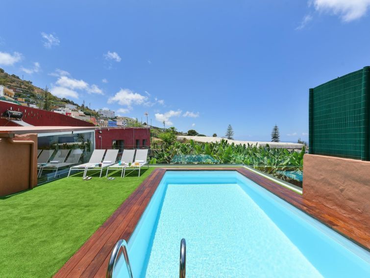 Moderne, mooi landgoed "Arriba Arucas". Aan de rand van de plaats Arucas, rustige ligging, direct aan zee. Voor alleengebruik: tuin, openluchtzwembad (seizoensgebonden beschikbaarheid: 01.Jan. - 31.Dec.). Barbecue. Winkel 4.5 km, levensmiddelenwinkel 4.5 km, supermarkt 4.5 km, restaurant 4.5 km, bushalte "El Molino" 100 m. Auto noodzakelijk. Baby uitrusting op aanvraag. De eigenaar accepteert geen jeugdgroepen. Vliegveld 3.5 km van het huis.