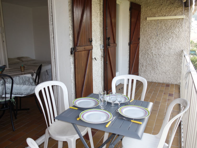 Appartement 2-kamers 35 m2 op de 2e verdieping. Woon-/eetkamer met 1 uitschuifbaar bed (2 pers. 2 x 80 cm, lengte 190 cm), TV. Uitgang naar het terras. 1 kamer met schuifdeur met 1 2-pers bed (140 cm, lengte 190 cm). Uitgang naar het terras. Kookhoek (oven, afwasmachine, 2 keramische glas kookplaten, magnetron, elektrische koffiemachine). Bad/WC. Elektrische verwarming. Terras 9 m2, overdekt, op het westen gelegen. Terrasmeubelen. Mooi uitzicht op zee. Ter beschikking: wasmachine, strijkijzer. Internet (Internet (WiFi), extra). Parkeerplaats nr. 574. Maximaal 1 klein huisdier/hond toegestaan. TV alleen FR. Rookmelders. Let op: het bad is klein (lengte: 108 cm). 83112 000275 84