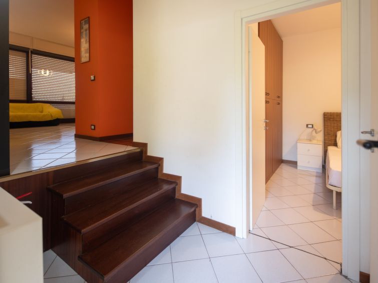 "Norby", appartement 2-kamers 50 m2, op de begane grond. Doelmatig ingericht: woon-/eetkamer, op 2 verdiepingen met panoramavenster met 1 divanbed (140 cm), open haard (alleen decoratie), Sat-TV en ventilator. Uitgang naar het terras. 1 2-pers. kamer. Kookhoek (4-pits kookplaat, waterkoker, magnetron, elektrische koffiemachine). Terras 20 m2. Terrasmeubelen, ligstoelen (2). Mooi uitzicht op het meer en de bergen. Ter beschikking: wasmachine, haardroger. Internet (WiFi, gratis). Parkeerplaats nr. A-305 (overdekt). Koelkast zonder vriesvak. Maximaal 1 huisdier/hond toegestaan. Rookmelders, brandblusser. IT103033C2IZP4E4KX