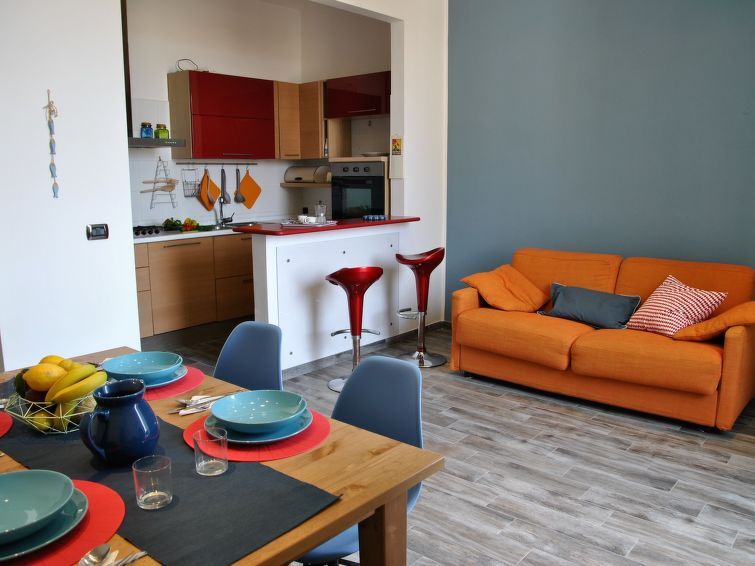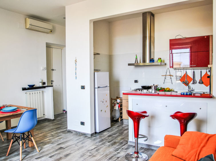 Appartement 3-kamers 60 m2 op de 4e verdieping. Modern en gezellig ingericht: woon-/eetkamer met kookhoek. 1 2-pers. kamer. 1 kamer met 2 bedden. Kookhoek (4-pits kookplaat, oven, afwasmachine, diepvriezer). Bad/bidet/WC. Gas-verwarming, air-conditioning. Terras 2 m2. Ter beschikking: wasmachine, strijkijzer, haardroger. Internet (Internet (WiFi)). Parkeerplaats (1 Auto). 1 klein huisdier/hond toegestaan. Geen lift. IT059008C23UG7XU99