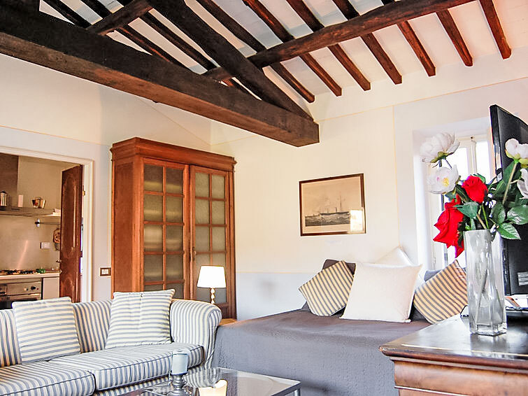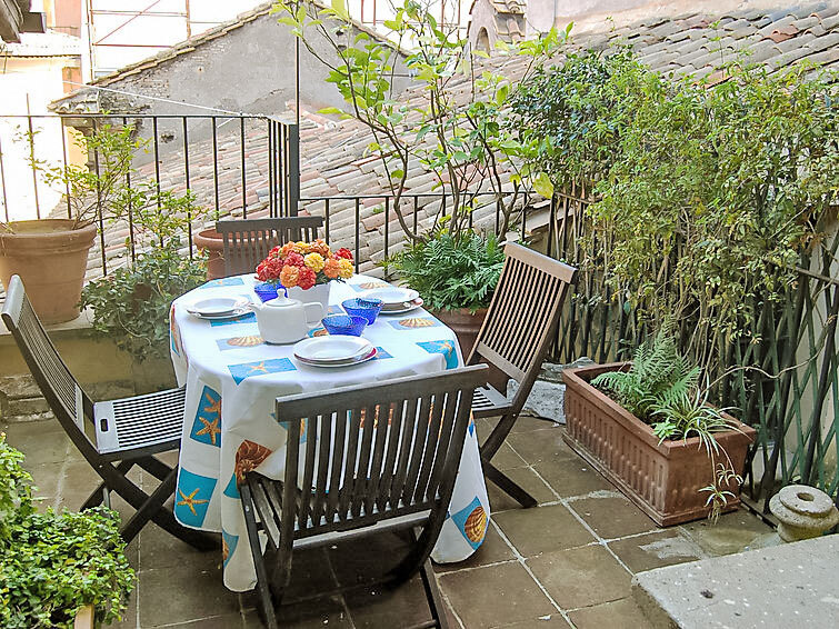 "Campo de' Fiori", appartement 6-kamers 200 m2 op 2 verdiepingen op de 1e verdieping. Doelmatig en gezellig ingericht: woon-/eetkamer met 1 opklapbed, eettafel en Digitale TV. 1 2-pers. kamer. 1 2-pers. kamer met 1 2-pers bed. Kleine keuken (4-pits kookplaat, afwasmachine, waterkoker, magnetron). 2 bad/bidet/WC's. Verwarming, air-conditioning. Bovenverdieping: (buitentrap) woon-/eetkamer met 1 2-pers divanbed, eettafel, Digitale TV, Flatscreen TV en DVD. Uitgang naar het terras. 1 kamer met 2 bedden. 1 2-pers. kamer met douche/bidet/WC. Uitgang naar het terras. Keuken (4-pits kookplaat, oven, afwasmachine). Verwarming, air-conditioning. 2 kleine terrassen. Terrasmeubelen. Ter beschikking: wasmachine, strijkijzer, haardroger. Geen parkeerplaats. Geen lift. IT058091C2CJ3VN8A5