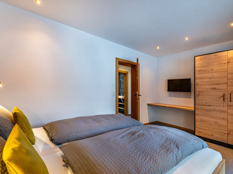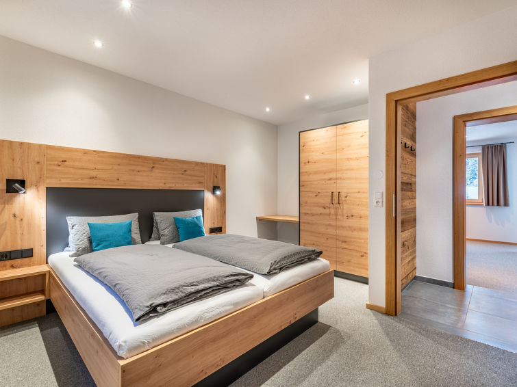 "Leo", appartement 4-kamers 72 m2, op de begane grond. Modern en met veel hout ingericht: 2 2-pers. kamers, elke kamer heeft Sat-TV. Uitgang naar het terras. 1 2-pers. kamer met Sat-TV. Woonkeuken (oven, afwasmachine, 4 keramische glas kookplaten, broodrooster, waterkoker, magnetron, diepvriezer, elektrische koffiemachine, pads voor de koffiemachine (Tschibo Cafissimo)) met eethoek en Sat-TV. Uitgang naar het terras. 2 douche/WC's. Vloerbedekking. Terras. Mooi uitzicht op de bergen. Ter beschikking: Internet (Internet (WiFi), gratis). Parkeerplaats (2 Auto's). Niet rokers woning. Rookmelders, brandblusser.