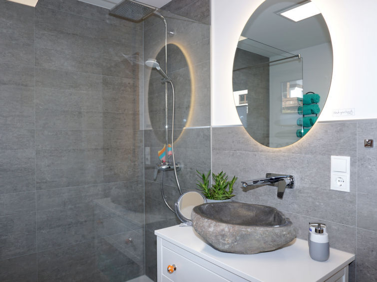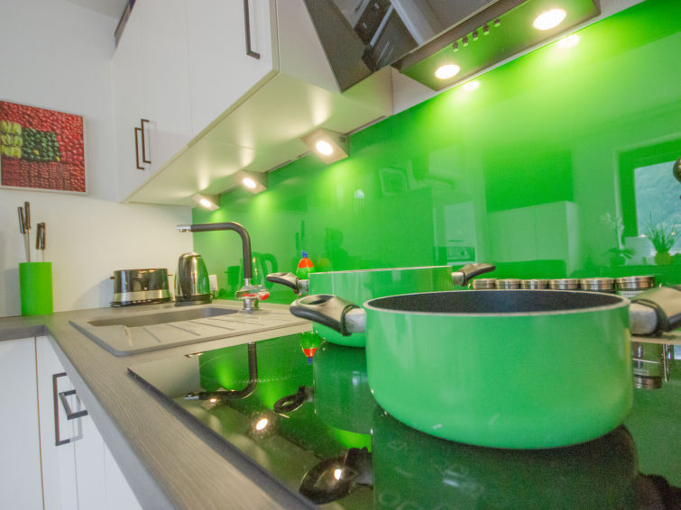 "Milli", appartement 3-kamers 70 m2, op de begane grond. Modern en gezellig ingericht: hal. 1 2-pers. kamer. 1 kamer met 1 bed en 1 2-pers bed. Woonkeuken (oven, afwasmachine, 4 keramische glas kookplaten, broodrooster, waterkoker, magnetron, diepvriezer, elektrische koffiemachine) met eettafel en TV. Douche/WC. Groot balkon, op het zuiden gelegen. Balkonmeubilair. Mooi uitzicht op de bergen. Ter beschikking: Internet (Internet (WiFi), gratis). Parkeerplaats (1 Auto). Niet rokers woning. Rookmelders.