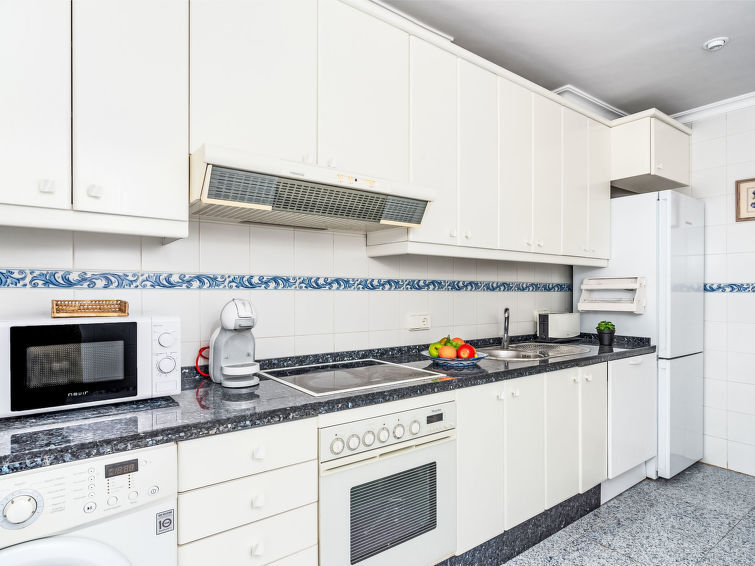 "Residencial Marina", appartement 4-kamers 115 m2 op de 1e verdieping. Het objekt is geschikt voor 4 volwassenen + 2 kinderen. Ruim, gedeeltelijk gerenoveerd in 2024, comfortabel en mooi ingericht: woon-/eetkamer met Sat-TV (Flatscreen TV), elektrische kachel en air-conditioning. Uitgang naar het terras. 2 kamers, elke kamer heeft 1 2-pers bed (135 cm, lengte 190 cm), elektrische kachel. 1 2-pers. kamer met 2 bedden (90 cm, lengte 190 cm), elektrische kachel. Keuken (afwasmachine, 4 keramische glas kookplaten, broodrooster, waterkoker, magnetron, diepvriezer, elektrische koffiemachine, combimagnetron) met eettafel. Bad/WC, douche/WC. Terras 8 m2. Terrasmeubelen. Ter beschikking: wasmachine, strijkijzer, haardroger. Internet (WiFi, gratis). Parkeerplaats nr. 52. VUT/MA/80558 // Reg. Nr.: ESFCTU0000290350002423080000000000000000VUT/MA/805581